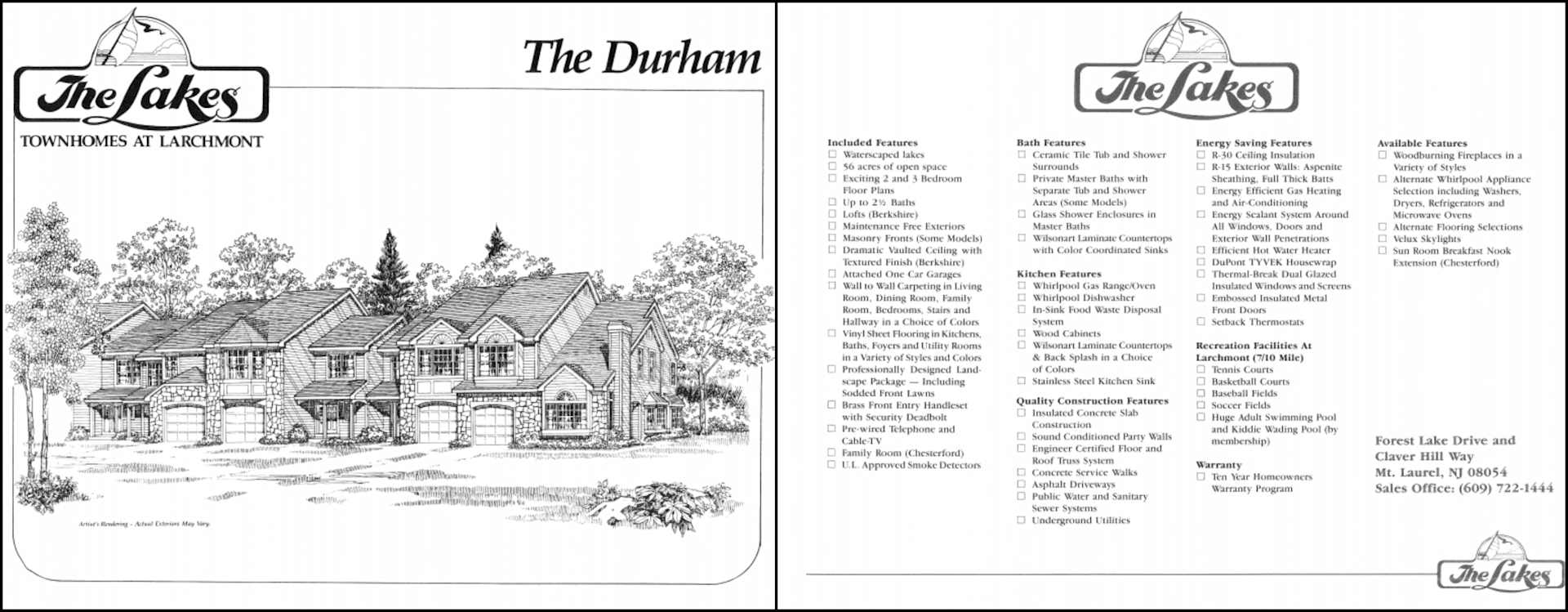 Location is so important when buying a home and The Lakes at Larchmont offer a centralized location with access to all major roads and highways such as Route 38, 70, 73, I-295 and the NJ Turnpike. Philadelphia is a mere 17 miles away, and most shore points are within an hour drive. Prestigious local Mount Laurel schools are another major plus. The features of condos in The Lakes at Larchmont will insure long-lasting enjoyment at your new residence. Brand name appliances, beautiful kitchens, sumptuous bathrooms and much more. The full list of features can be viewed in the picture below.